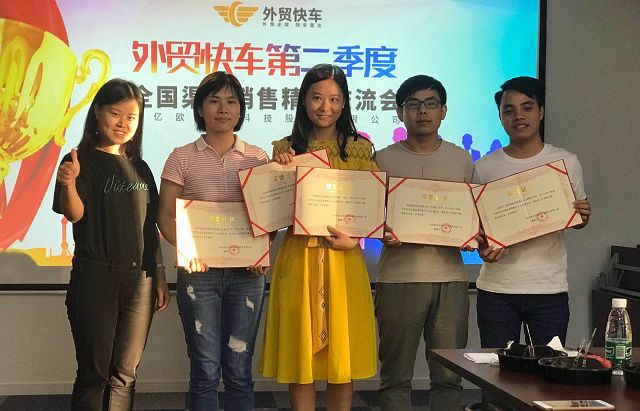 下午6时交流大会结尾,由外贸快车全国渠道总监鸦总颁发给前20强外贸快车渠道销售人员奖项。