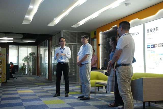 2018年8月28日星期二下午,浙江省杭州市江干区委常委、宣传部长许德清、文创办副主任赵海军、以及闸弄口街道办事处主任沈文燕一行人来我司考察思亿欧及外贸快车项目。