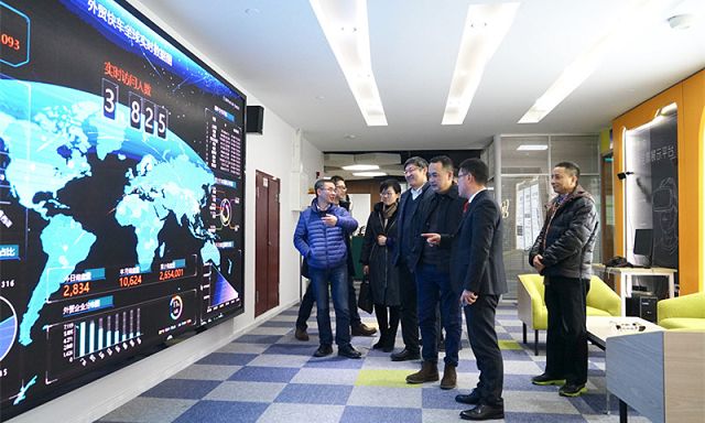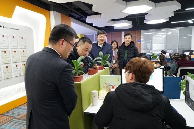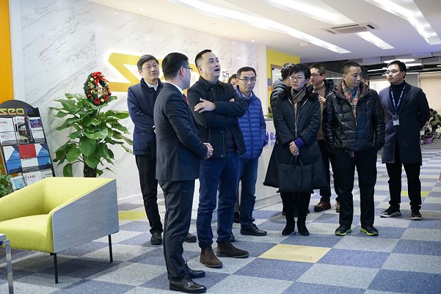 2019年1月3日(周四)下午,浙江省杭州市江干区人民政府区长楼建忠、江干区副区长范朝辉、江干区科学技术局党组书记王红兵及江干区发改局党委书记吕红娟一行人到访我司参观思亿欧及外贸快车项目,思亿欧董事长何旭明先生热情接待。