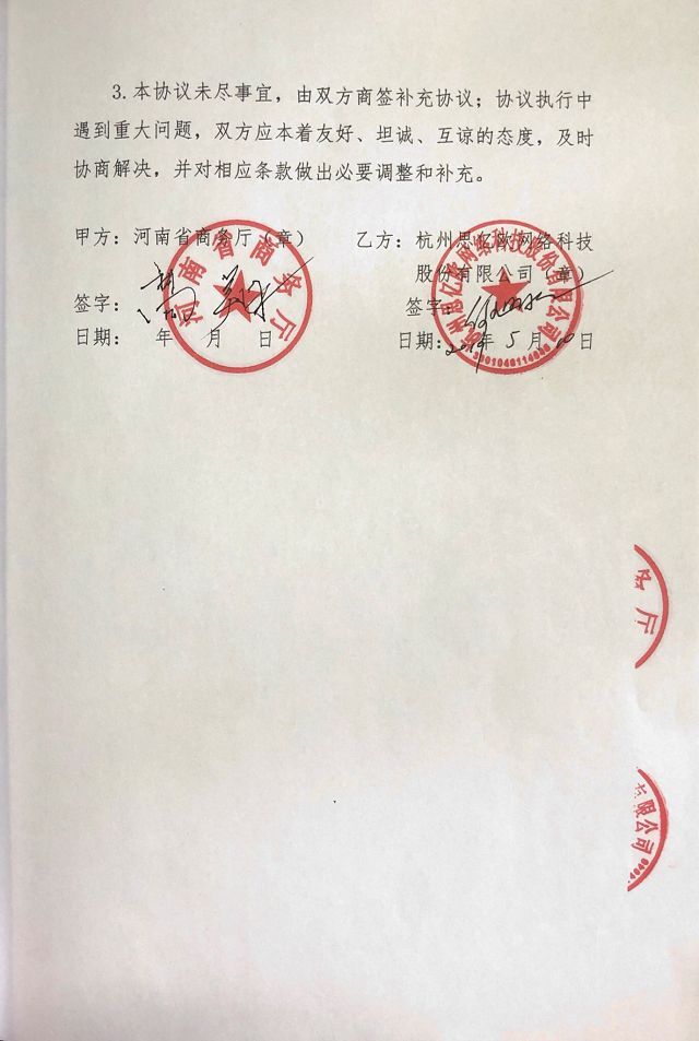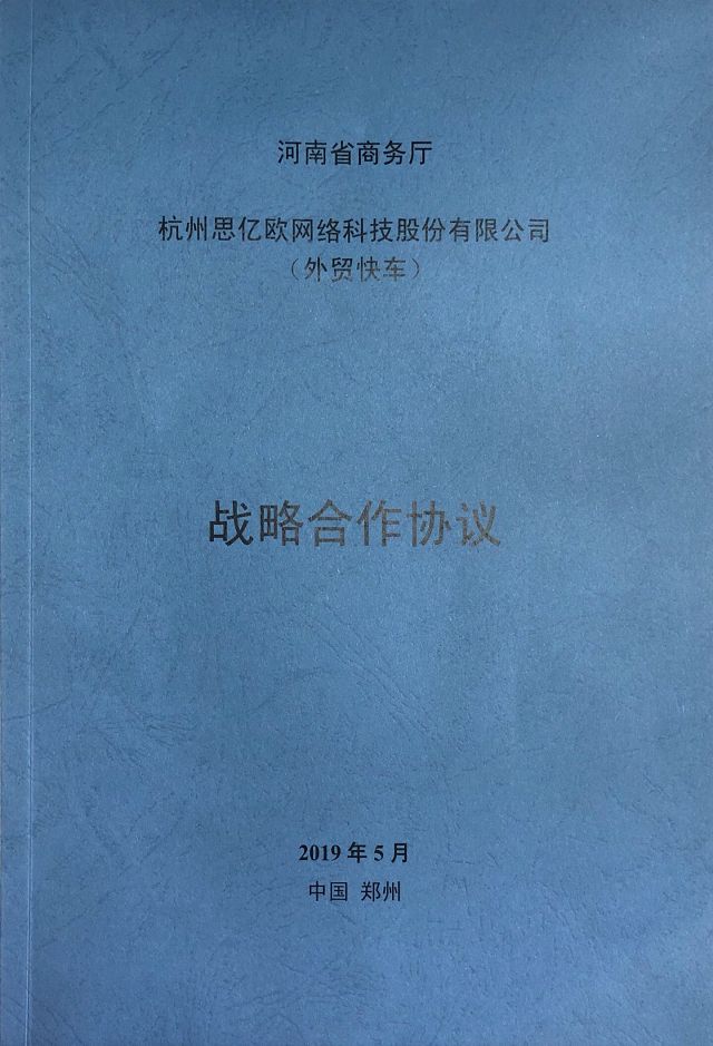 2019年5月河南省商务厅、杭州思亿欧网络科技股份有限公司(外贸快车)于郑州签订《战略合作协议》。