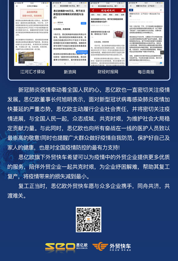 面对疫情丨思亿欧捐款100万 获得各政府及媒体肯