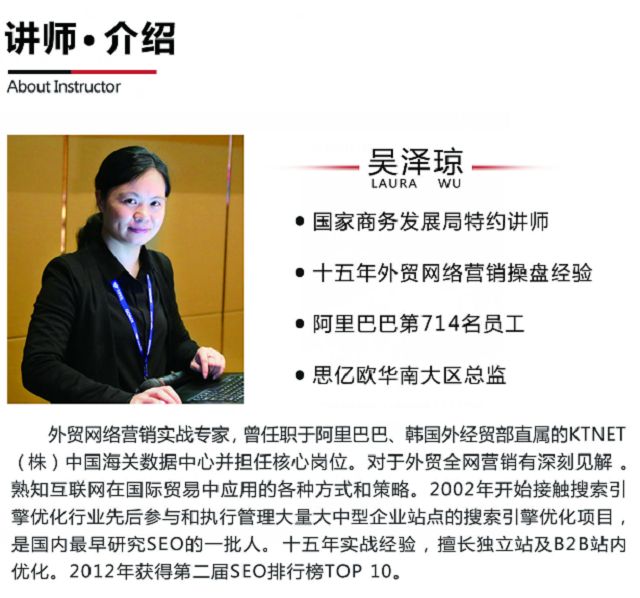 互联网+电子商务时代是没有大小企业之分这是快鱼吃慢鱼的时代,对于企业的发展新渠道大部分的人不是看不见就是看不起又或者是看不懂但更多的是来不及。如何在快速发展的互联网时代为外贸企业找到发展的新渠道,主讲师吴泽琼为在场的来宾进行了详细的分析,并分享重要干货。
