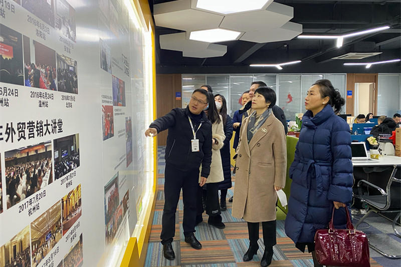 2021年1月7日(周四)上午,中国(杭州)跨境电子商务综合试验区建设领导小组办公室副主任陈卫菁 、宣传部长武长虹、副部长陈健一行人到访我司参观思亿欧及外贸快车项目,思亿欧董事长何旭明先生、思亿欧高级副总裁徐苏源、技术总监方勇热情接待。