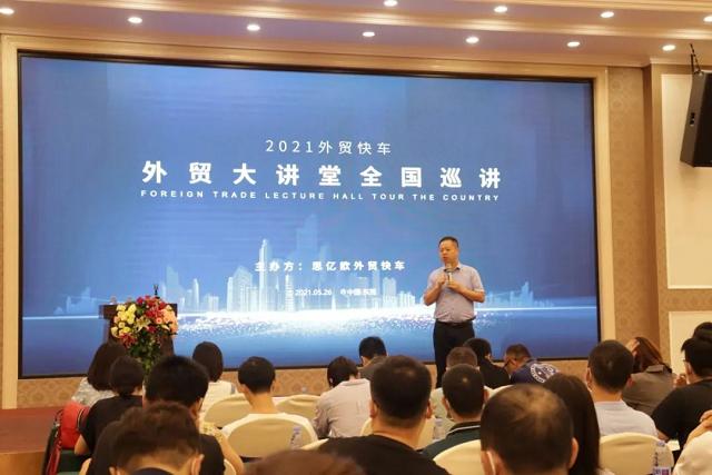 2021年5月26日,在东莞市南城区维也纳国际酒店举办的外贸大讲堂已圆满落幕。本次活动由杭州思亿欧主办、外贸快车东莞服务中心承办。思亿欧高级副总裁徐苏源先生、外贸快车渠道总监鸦明忠先生出席会议。会议吸引了近600家企业到场,现场座无虚席,参会人士热情高涨。