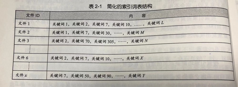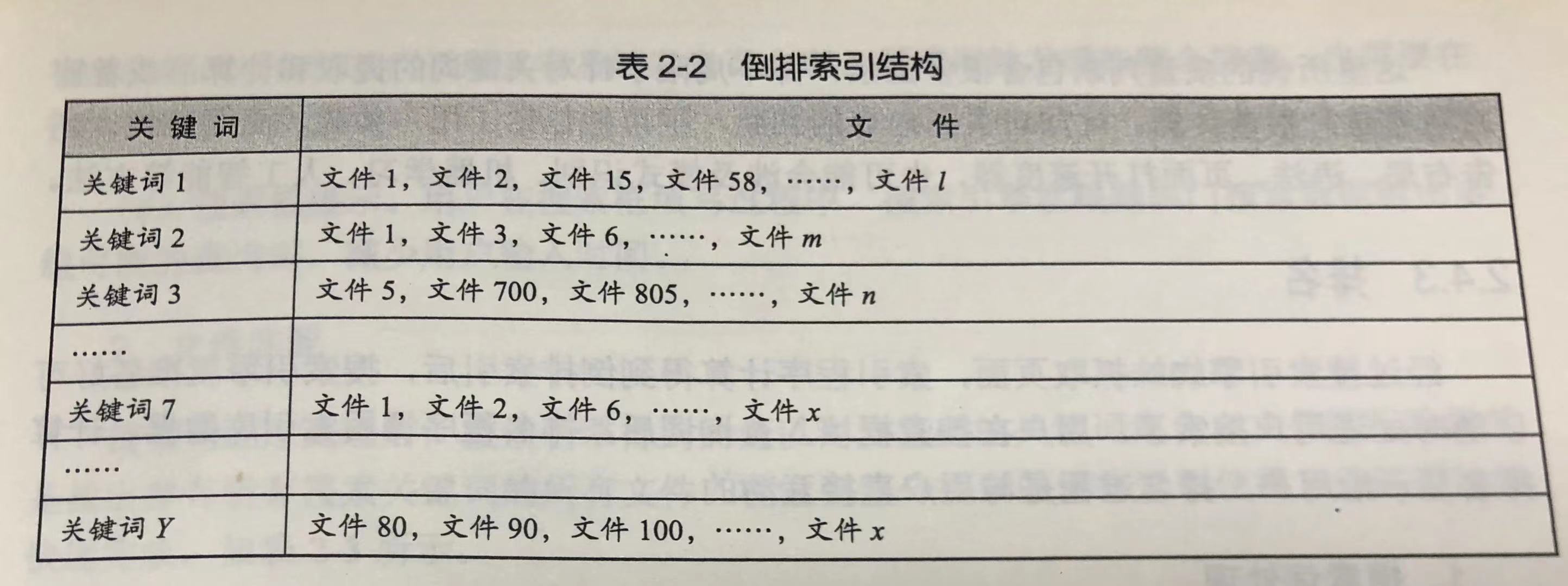 所以搜索引擎会将正向索引数据库重新构造为倒排索引,把文件对应到关键词的映射转换为关键词的映射转换为关键词到文件的映射,如表 2-2 所示。