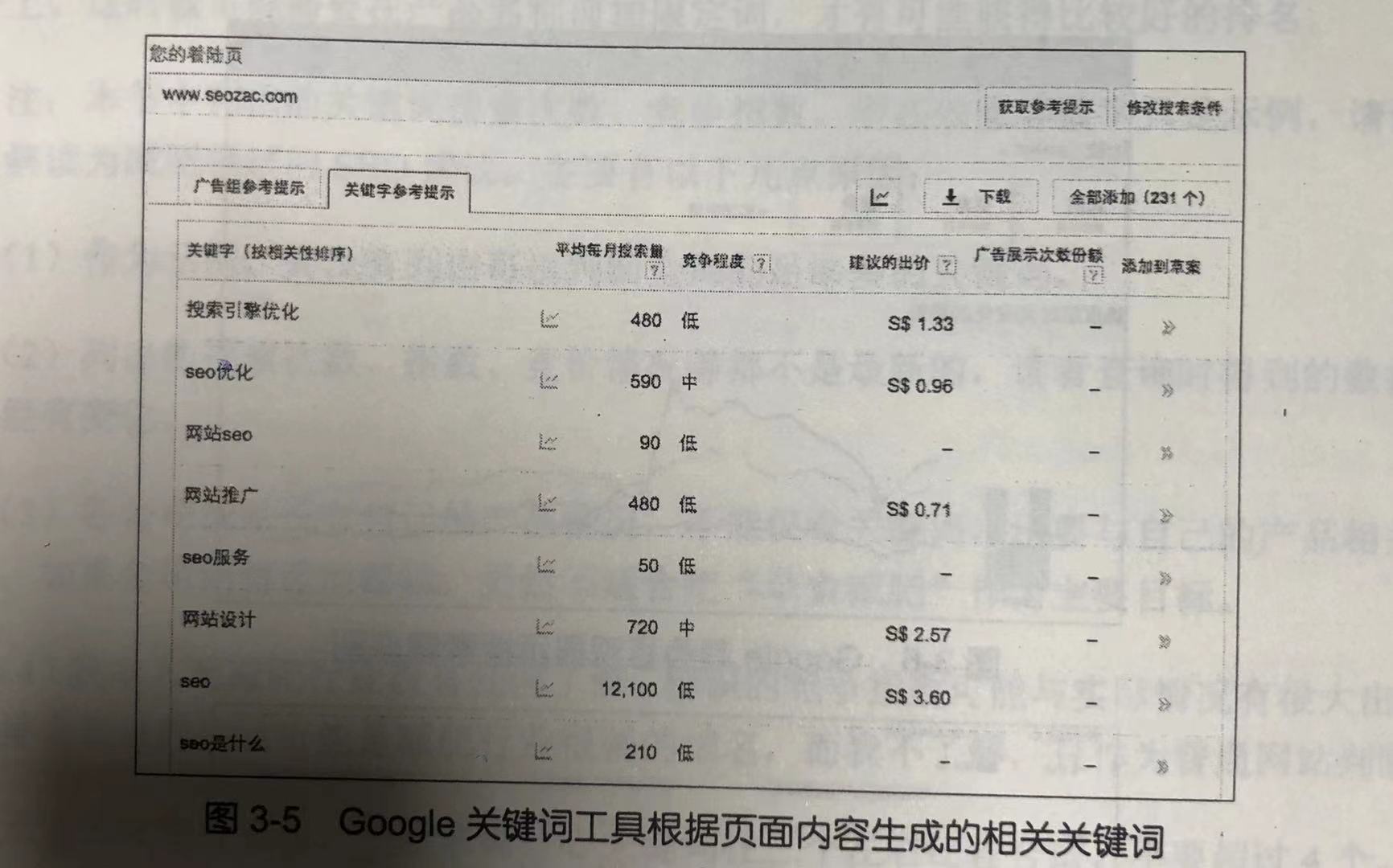 Google 工具根据页面内容生成相关关键词,如图 3-5 所示。