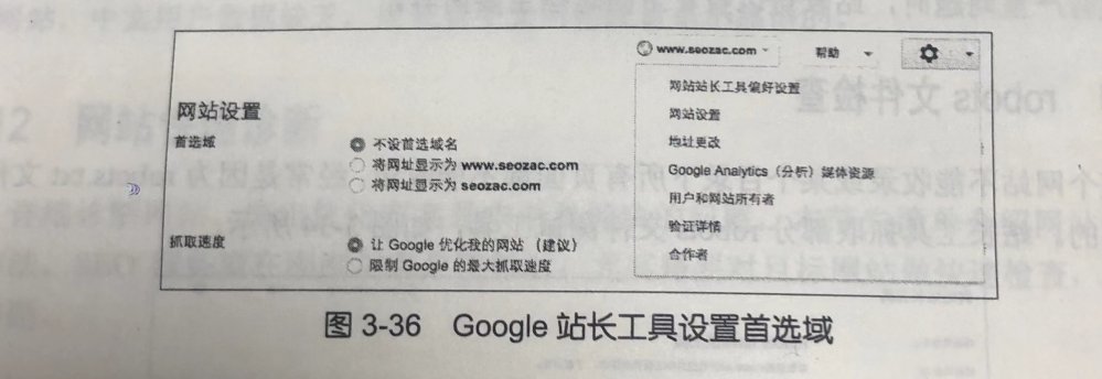 站长可以设置 Google 应该收录带 www 还是不带 www 的网址版本,称为首选域,如图 3-36 所示。