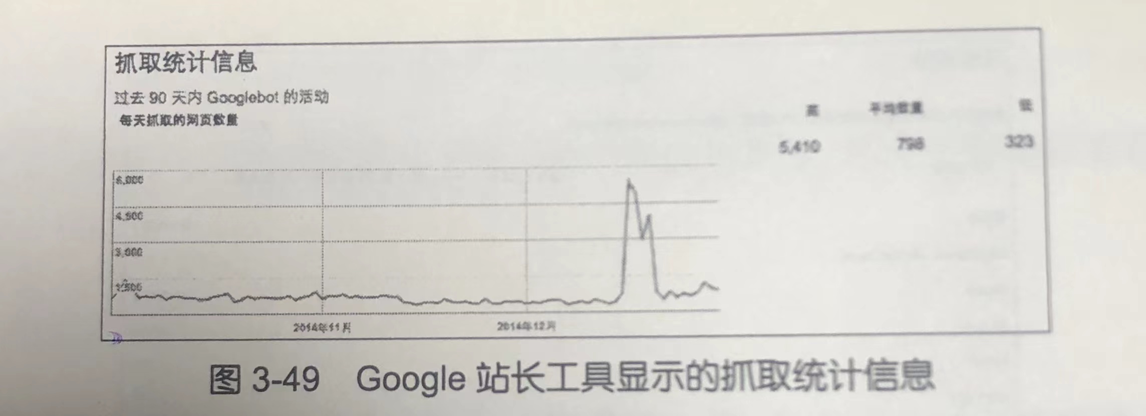 如图 3-49 所示,我的博客每天抓取页面数平均为几百页,对于一个只有几百篇帖子的博客来说很正常。如果是几十万上百万页面的大中型网站,平均每天抓取几百个页面就太糟糕了,照这个速度,要把整个网站更新一遍,恐怕得好几年时间。大中型网站每天抓取几万页面是最低标准。如果抓取频率太低,SEO 人员必须在外部链接建设及网站结构上多下工夫。