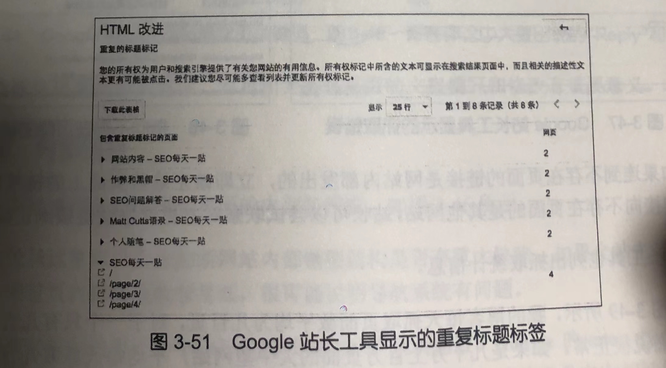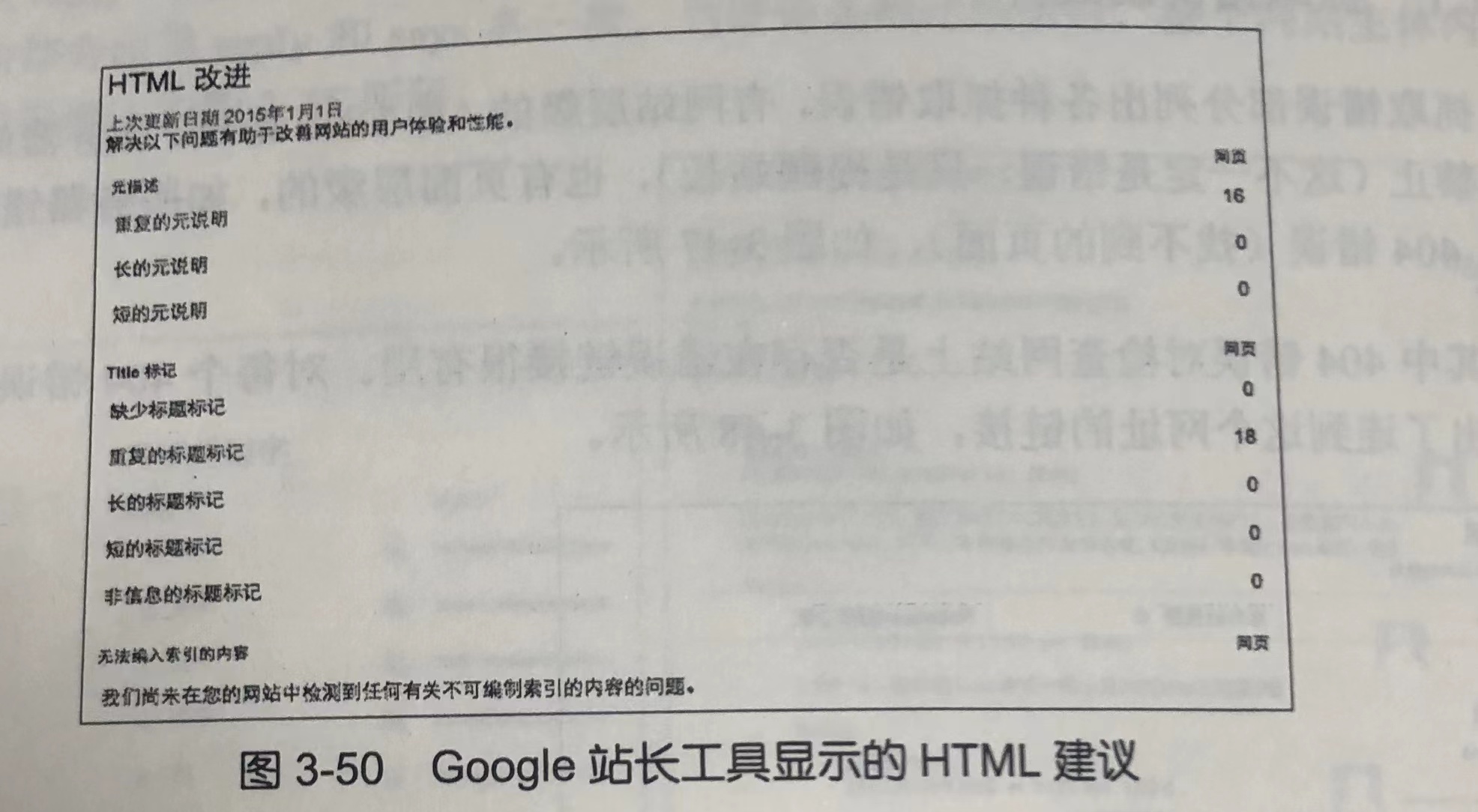 查看 Google 的 HTML 建议是寻找网站上可能出现的复制内容的最简便方法,如图3-50 所示。