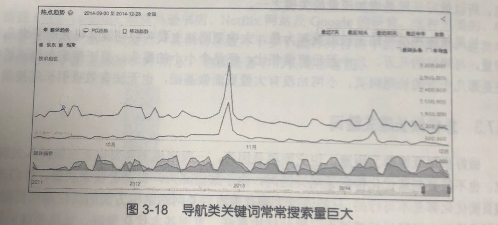 按照搜索目的不同,关键词大致可以分为三种类型 : 导航类,交易类和信息类 1 导航类关键词 导航类关键词指的是用户在寻找特定网站,他知道自己想去哪个网站,只是不记得网址或懒得自己