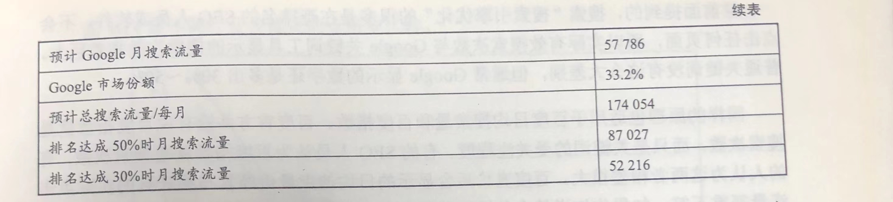 由于种种原因,项目执行下来能够达到预计排名的比例不可能是百分之百,只可能实现其中一部分关键词排名。所以在预估流量时不能按照所有目标关键词都达到预期排名计算,只要能完成 30%~50%就已经不错了。好在网站通常还会获得一些没有研究过的关键词排名,使误差减小。